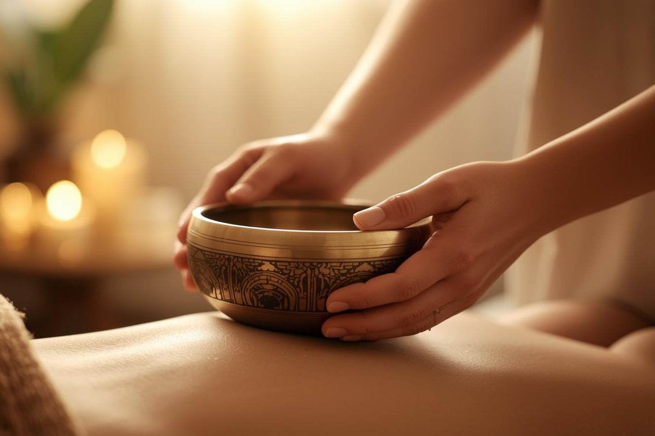 Die Anwendung findet in ruhiger Atmosphäre statt, während man entspannt in bequemer Kleidung auf einer Liege liegt. Es wird nicht massiert oder gedrückt – die Wirkung entsteht allein durch Klang und Schwingung. Die Klangschalenmassage eignet sich für Menschen jeden Alters, die sich eine bewusste Auszeit vom Alltag gönnen und neue Kraft schöpfen möchten.