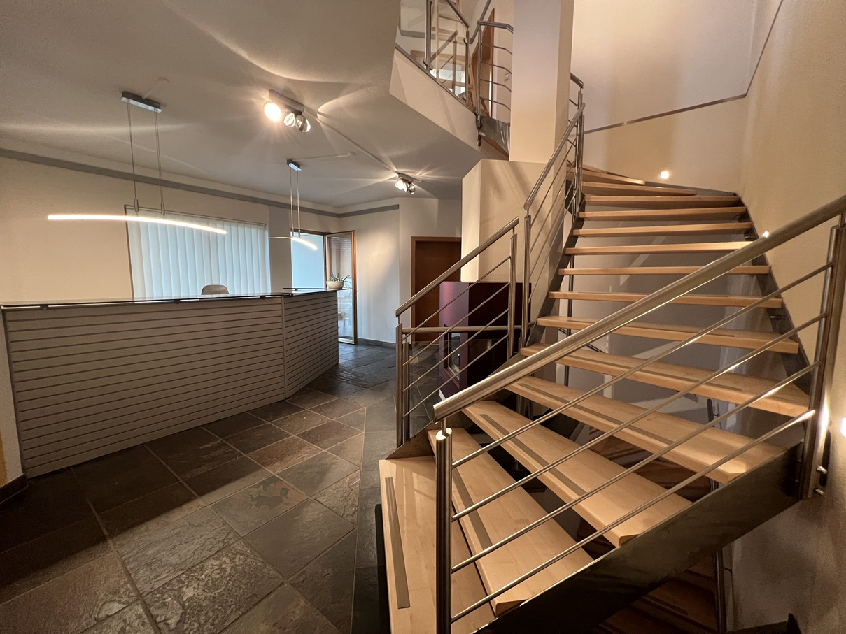 Unser Empfangsbereich heißt deine Klient:innen herzlich willkommen. Mit zwei stilvollen Arbeitsplätzen ausgestattet, bietet er eine angenehme und professionelle Atmosphäre, um deine Klient:innen direkt zu empfangen und für ihre Sitzung vorzubereiten. Hier beginnt der Moment der Ruhe und des Wohlbefindens.